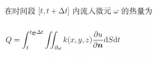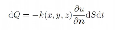 在时间微元dt内沿面积微元dS的法线方向n流过此面积微元的热量为: