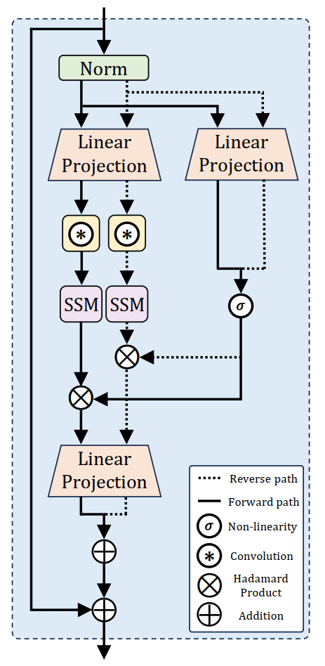 - BiMamba-S 的 SSM 模块高效捕获长距离依赖。