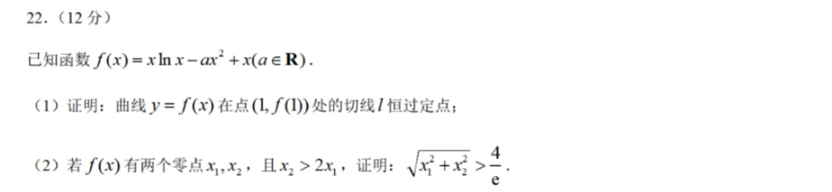 因为 \(\tfrac{1}{e}\)<\(x_{1}<1<x_{2}\),则 \(2 - x_{1}\) > \(1\)。