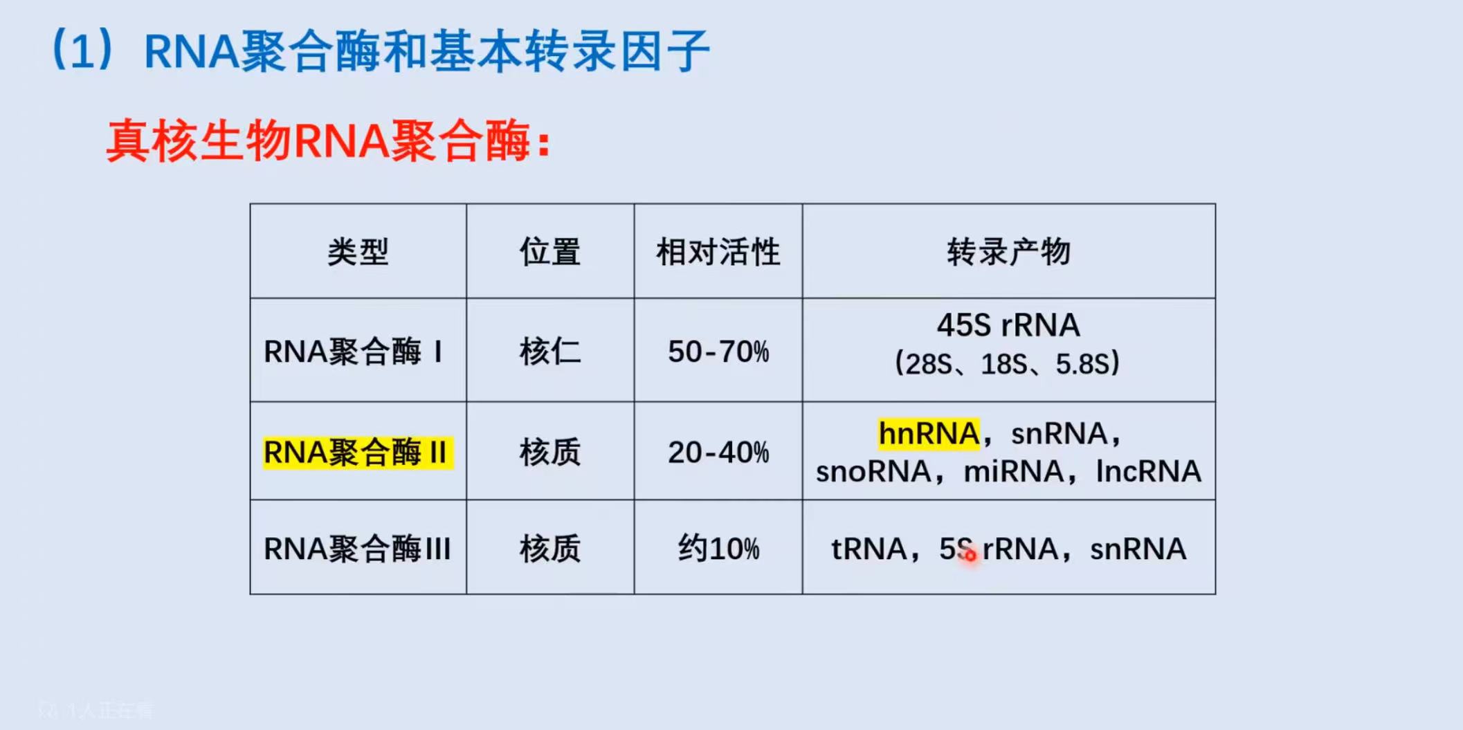 - 除个别通用(TFIIB),大多数成分是不同RNA聚合酶转录所需的,比如RNA聚合酶II需要TFIID/TFIIA/TFIIB/TFIIE等